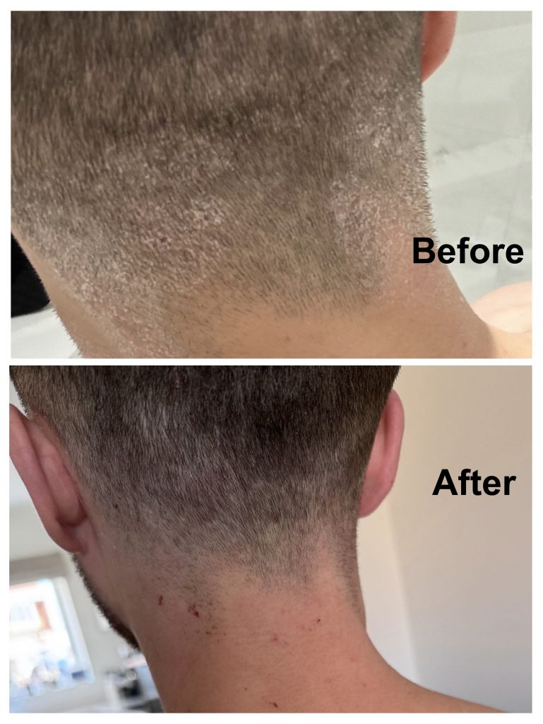 We accepted his case at Holistic Homeopathy, recorded his existing symptoms as well as thoroughly looked into all the events which led to his existing condition. His dietary regime, lifestyle and gut health were assessed in order to evaluate the causative factors. Michael was prescribed a homeopathic protocol lasting a period of four weeks. The photo shows his excellent response to four weeks’ of homeopathic treatment.