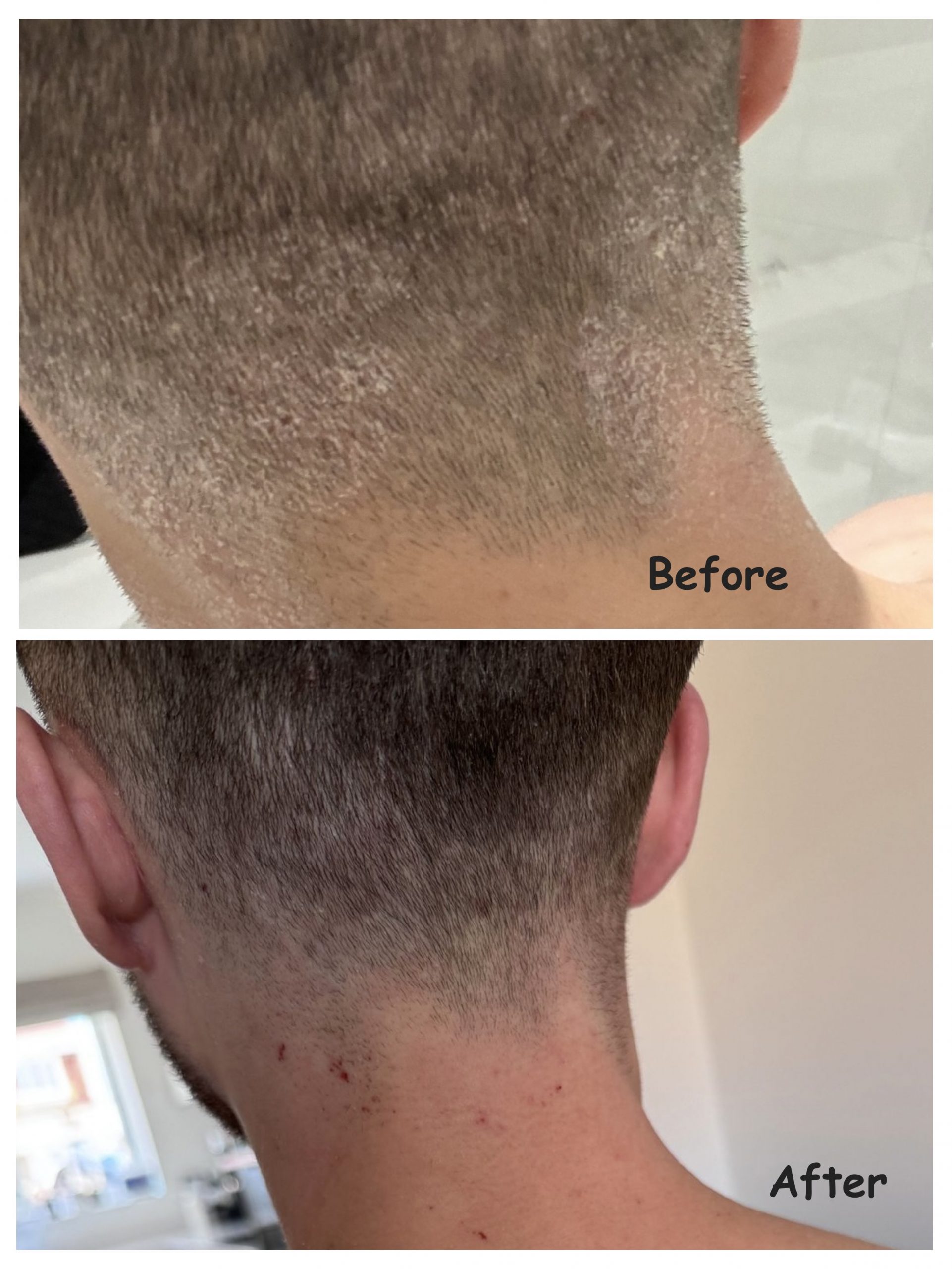 While recounting her ordeal during the initial consultation, she could not help “not scratch” her already raw and sensitive skin on neck and face, thus perpetuating the vicious circle only to make it even worse –as is the dilemma of TSW.